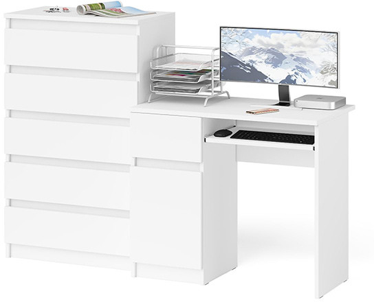 Наименование производителя | Мори Стол компьютерный МС-1 левый + Комод МК700.5, цвет белый, ШхГхВ 160,4х50х114 см., выдвижной ящик слева, НЕ универсальная сборка |
